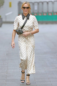 LONDON, ENGLAND - APRIL 26: Amanda Holden seen leaving Heart Breakfast Radio Studios on April 26, 2